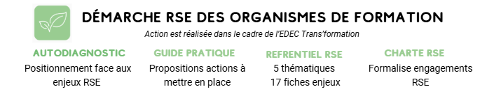 La fiche sur les formations écoresponsables souligne que les OF peuvent intégrer la RSE en proposant des formations dédiées ou en sensibilisant à travers des exemples concrets. Même lorsque le contenu des formations n’est pas directement lié à la RSE, adopter des pratiques écoresponsables dans leur organisation renforce leur image et leur crédibilité.